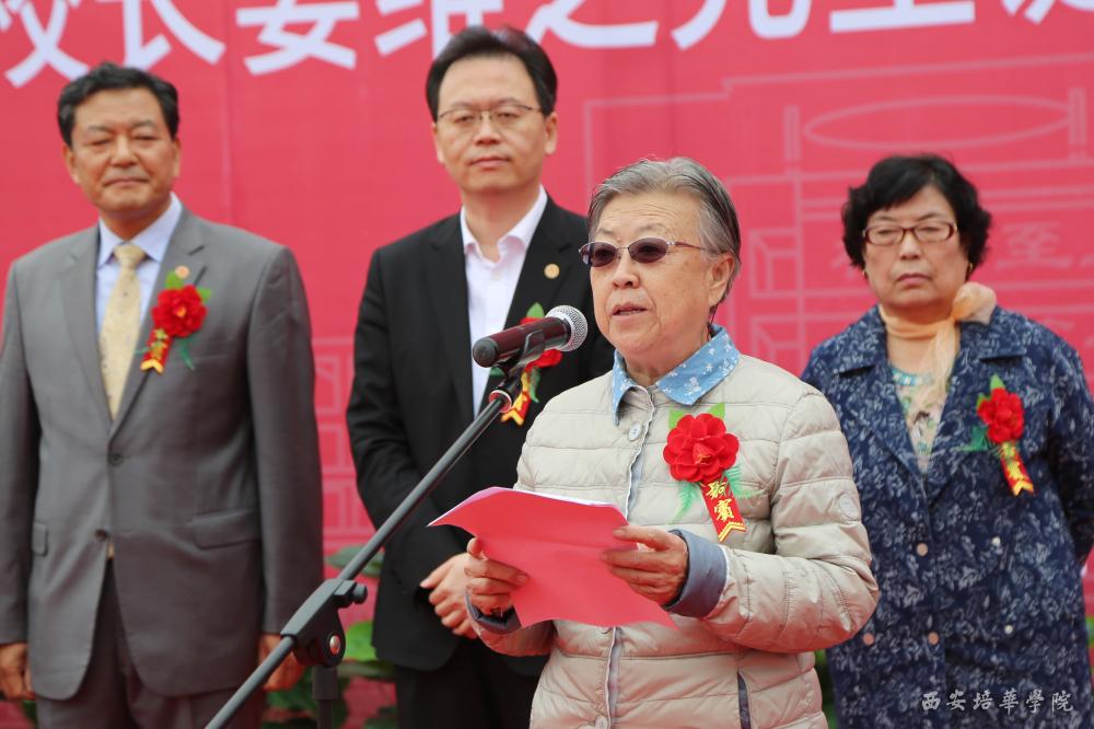 西安市长安区细柳古建筑工程公司董事长姚占计作表态发言,他表达了对老校长的崇敬和对其功绩的缅怀。他讲到,“维之园”的建设,将为学校增添一座充分展现培华精神、培华理念和培华文化和一个重要的人文景观,我们将精心设计、科学施工,高标准、高质量地完成建设任务。