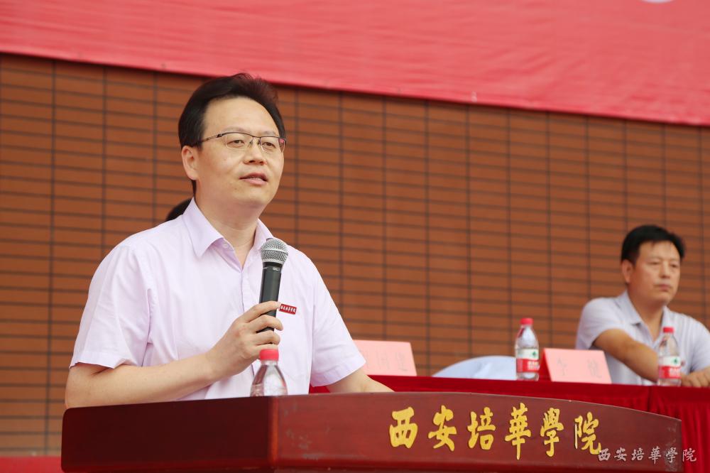 姜波理事长欢迎2016级莘莘学子加入培华大家庭,并作军训动员讲话。他讲到,作为一所与新中国同呼吸共命运的学校,西安培华学院经历并见证了祖国的艰辛发展历程。在抗战中,新中国建设时期,改革开放后,培华积极开展女性教育,培养金融人才,1984年著名教育家姜维之先生创建“培华女子大学”,建校88年来学校为各行各业培养了大量的应用技能型人才,赢得了良好的社会口碑。