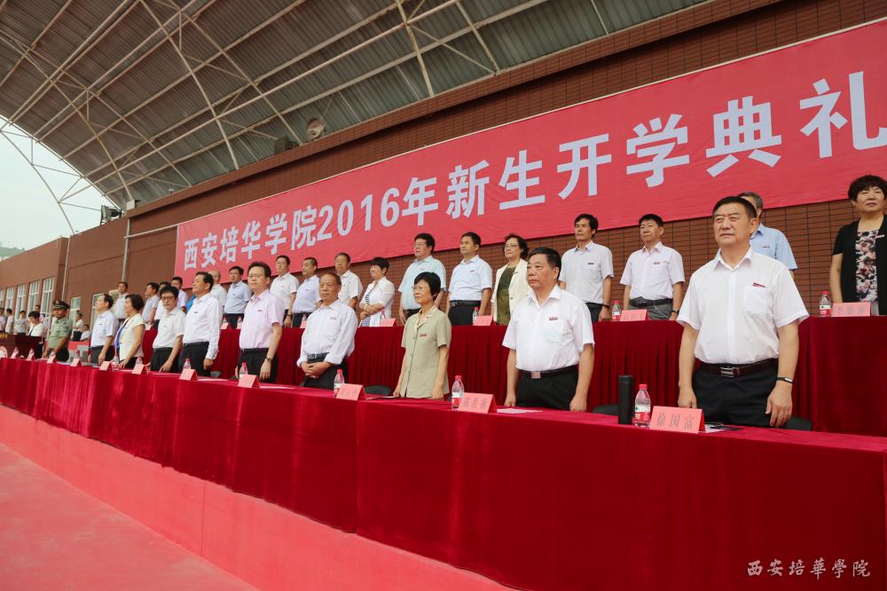 副校长于国亮教授宣读《西安培华学院2016级新生入学教育实施方案》,党委书记周庆华向军训团授旗, 军训团团长王刚少校宣读军训工作计划。 教官代表彭飞同志作表态发言,他表示军训期间将服从命令,听从指挥,文明施训,坚决完成军训任务。