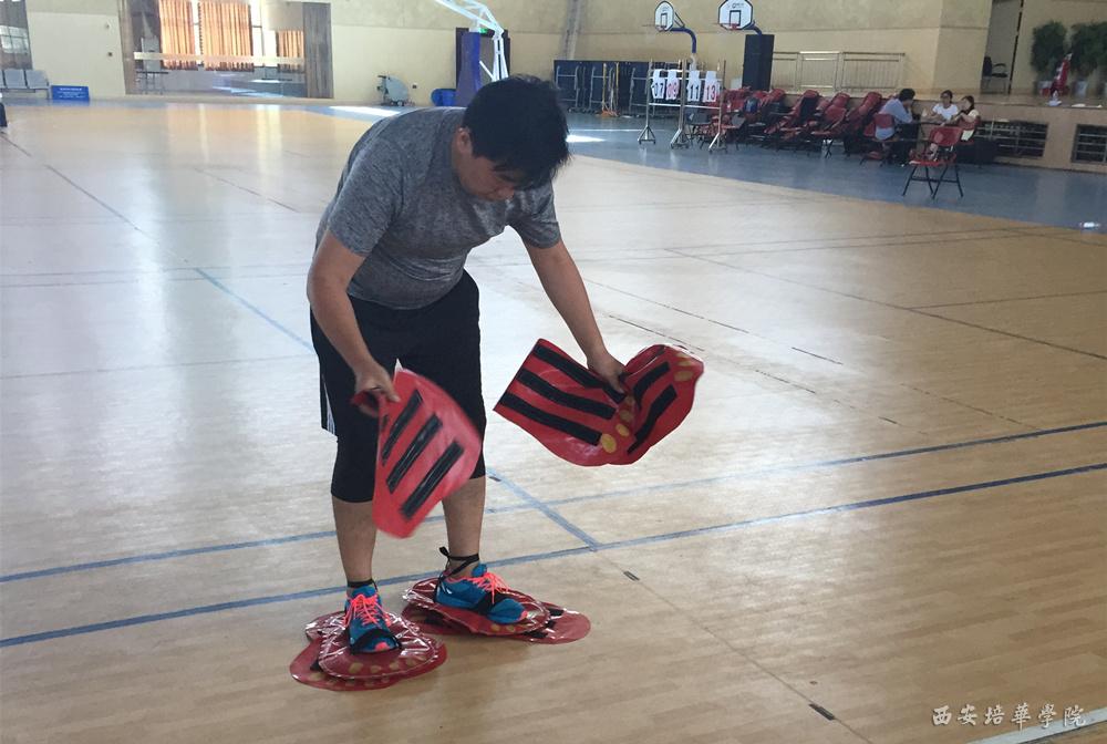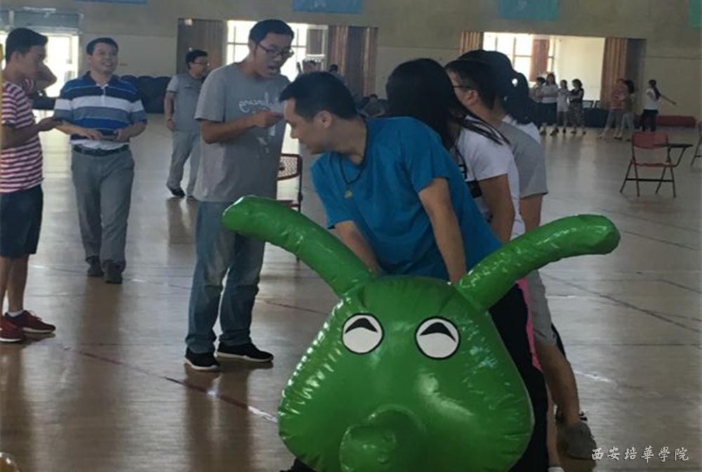 竞赛在欢快的“障碍毛毛虫”游戏中拉开序幕,每支参赛队伍派出12名成员分两组分别骑“毛毛虫”进行穿梭障碍接力,接力中需回答相应辅导员业务知识问题方可过关,用时最短的队伍获胜。