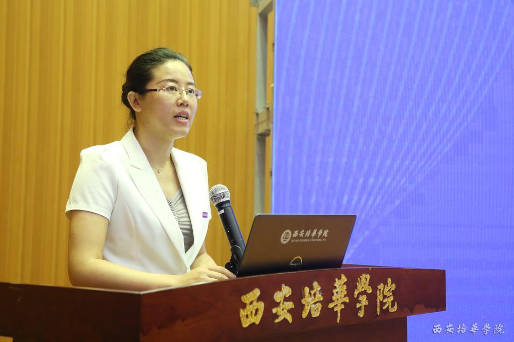 我校教师赵洁作为研修班学员代表在大会上进行了发言,她首先感谢教育部学校规划建设发展中心以及应用型课程建设联盟为大家提供了一个学习交流的机会。并表示,在国家和省上一系列政策的引导下,实施以学生为中心的启发式教学,对教师的教学提出了新的明确的要求,怎样使学中做、做中学,如何构建科学合理的学生评价体系,如何真正实现产教融合等一系列让人困惑的问题,相信都会在此次应用型建设研修活动中找到启发和思路。