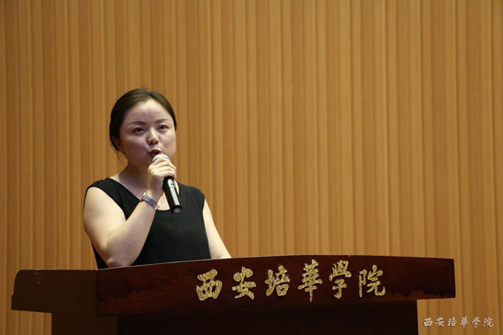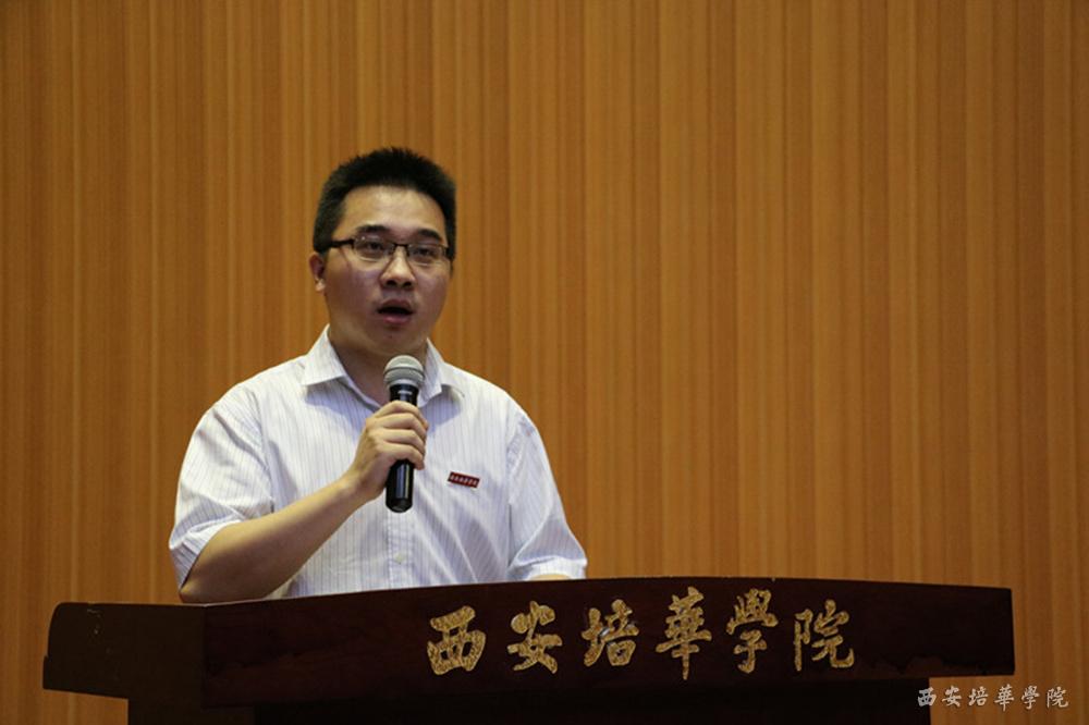 社团联合会秘书长高嘉炜老师宣读《关于西安培华学院新社团成立的决定》