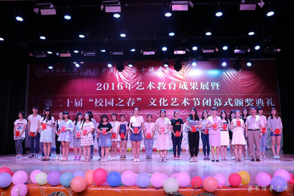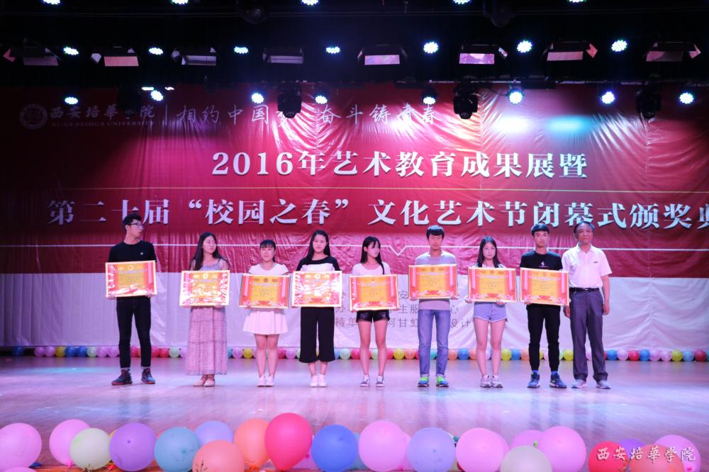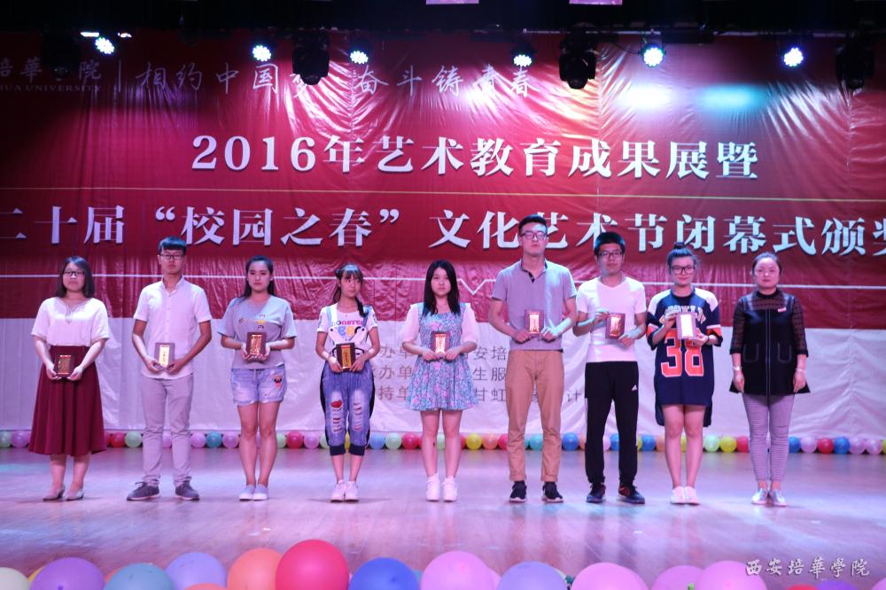 本届“校园之春”文化艺术节历时3个多月,开展诸如第二十届校园歌手大赛、第十二届“培华杯”辩论赛、第八届大学生环保创意大赛、第六届轮滑大赛、首届“舞心飞翔”大学生舞蹈大赛、第五届“培华杯”微电影大赛等大型活动14项,参与学生15800余人次,共设立57个奖项,186名个人和21个单位获奖。颁奖典礼上,与会领导为获奖的个人和集体颁发了荣誉证书(奖牌、奖杯)。