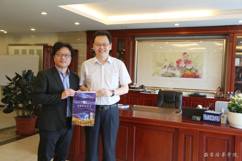 双方在明德楼会议室进行友好座谈,姜波理事长介绍了学校的发展情况,他强调,培华重视与台湾地区高等院校的交流,与国立台湾艺术大学、台湾中原大学、台湾逢甲大学、台湾岭东科技大学等学校都展开了交流合作,与台湾中国科技大学之前也多次进行交流,所以非常欢迎来宾一行的到访,希望可以扩宽双方的合作渠道,加深双方的合作关系,开启大陆和台湾在高等教育方面的合作交流新篇章。