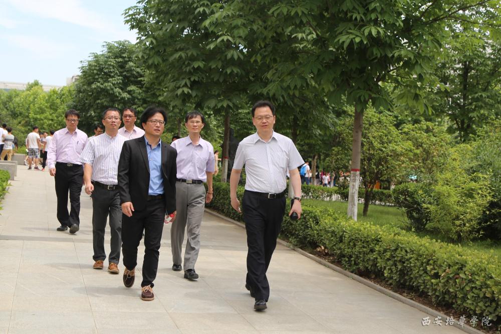 在姜波理事长的带领下,来宾一行参观我校校园