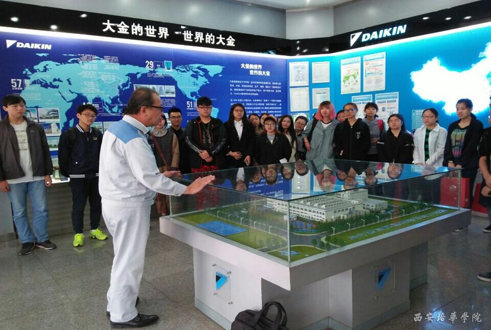 近日,作为教学实践活动的一个环节,我校日语系三十余名同学在刘建强教授和日籍藤田阳三老师的带领下参观了位于西安高新区的大金庆安中日合资企业。大金,是一家以生产空调等制冷设备的多种类型压缩机为主的日本企业集团,在我国上世纪实行改革开放后不久便落户于西安,拥有雄厚的研发生产能力和世界市场。