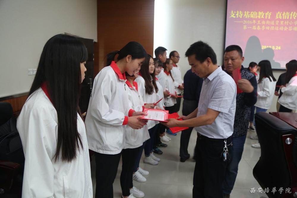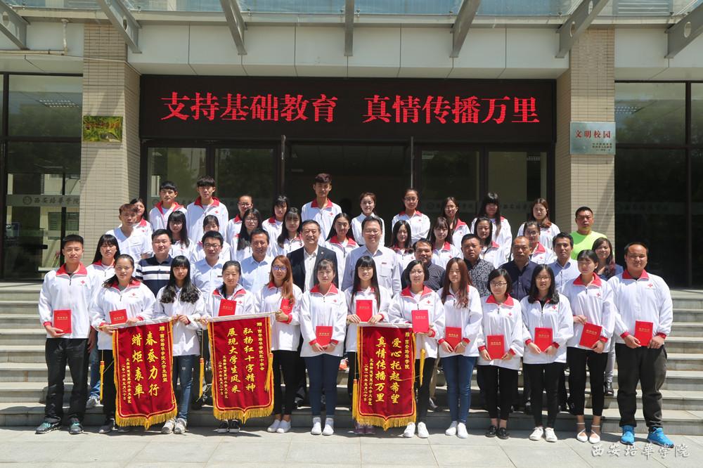 随后,王曲街道贾里村领导向我校赠送锦旗,并向红十字会优秀志愿者颁发荣誉证书,并就志愿服务活动及相关合作事宜进行了座谈交流。