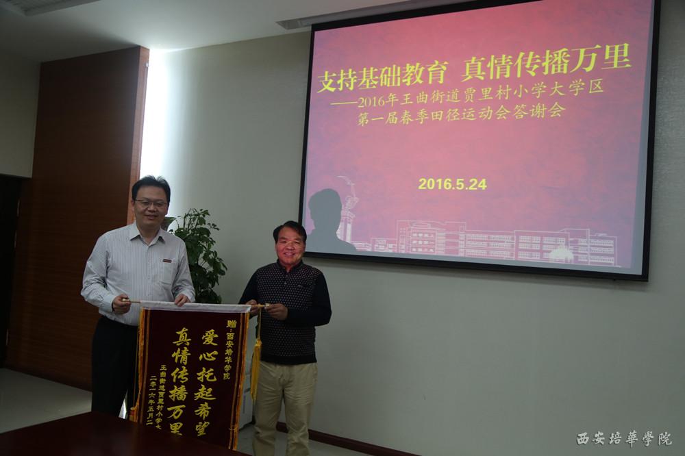 5月24日,2016年王曲街道贾里村小学大学区第一届春季田径运动会答谢会在我校明德楼第一会议室内召开。王曲街道贾里村东片党支部书记孟令平、王曲街道贾里村监委会主任田辉、王曲街道中心学校校长李占民、皇甫小学校长雷小爱、鱼包头小学校长王天宁,我校理事长姜波、副校长徐国富、校长办公室副主任李建、团委工作部部长屈先锋、红十字会指导老师赵子瑜以及红十字会志愿者代表30余人参加了本次会议。