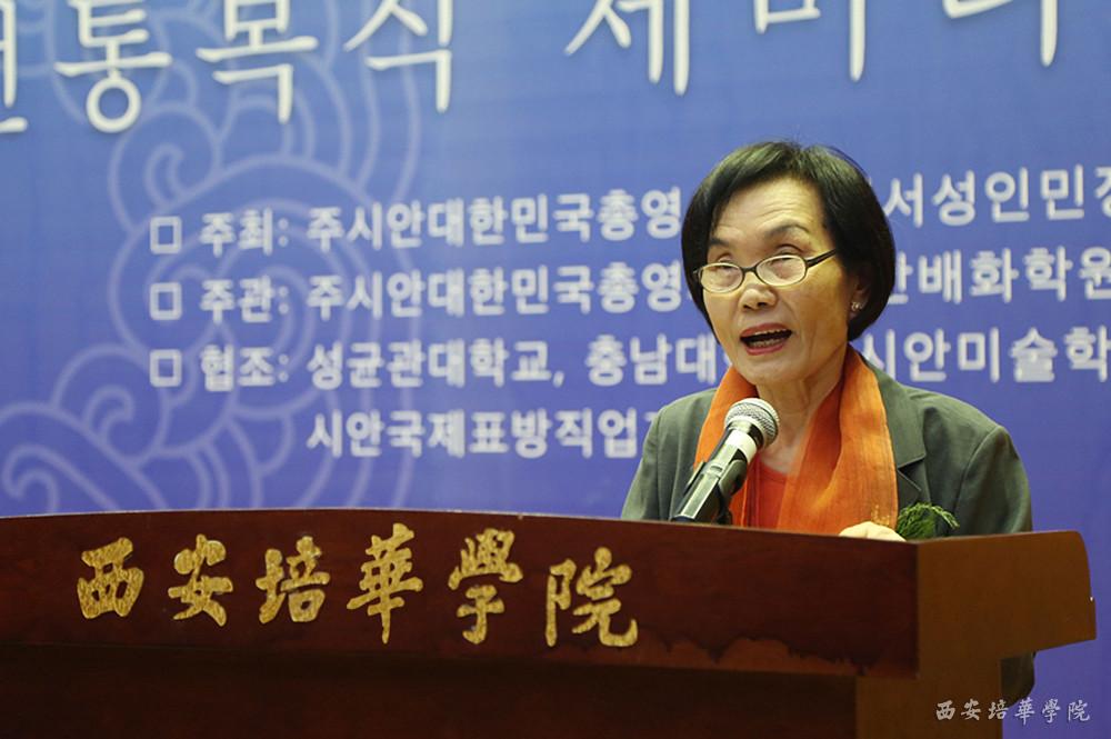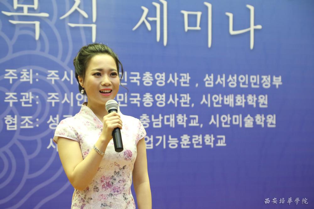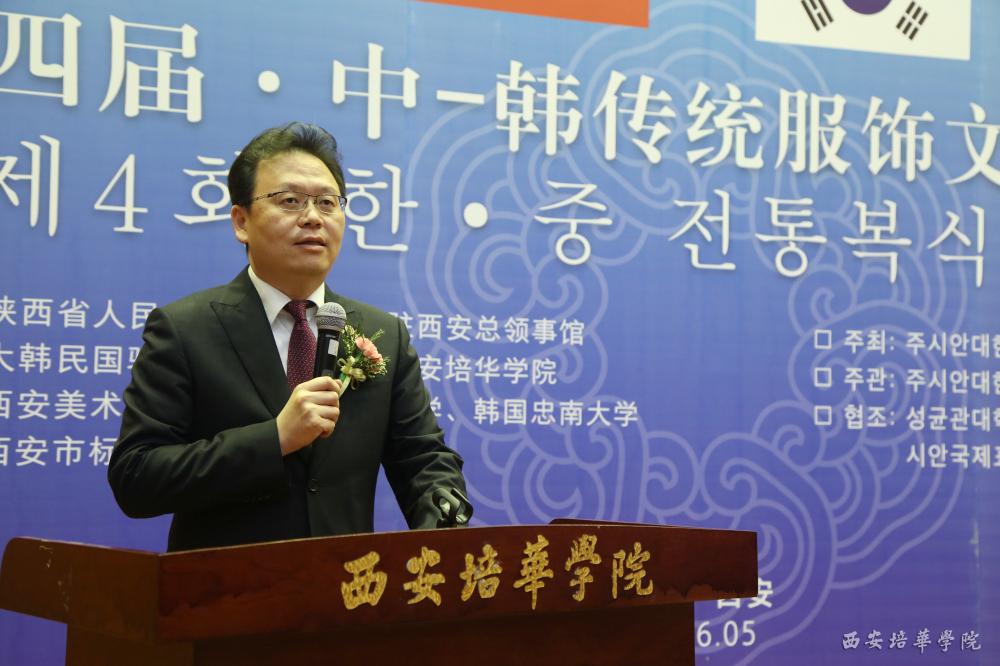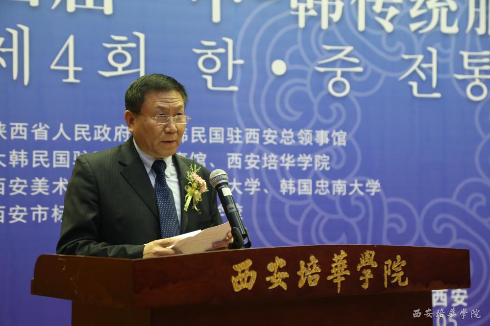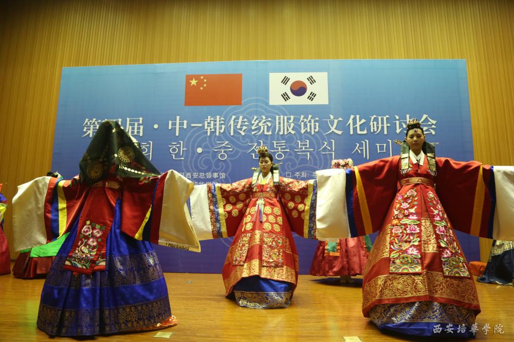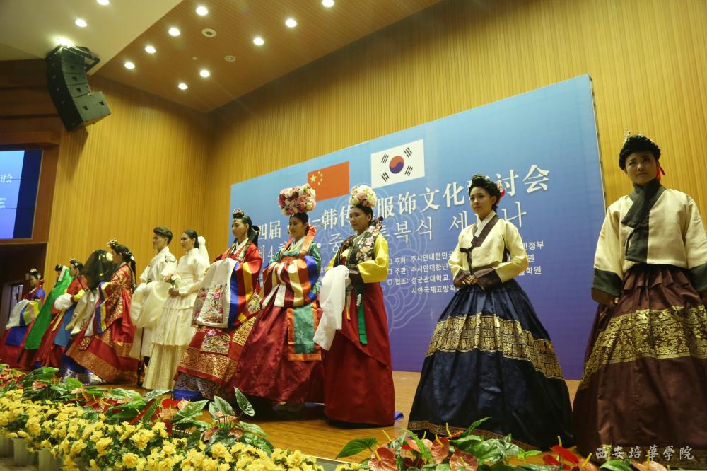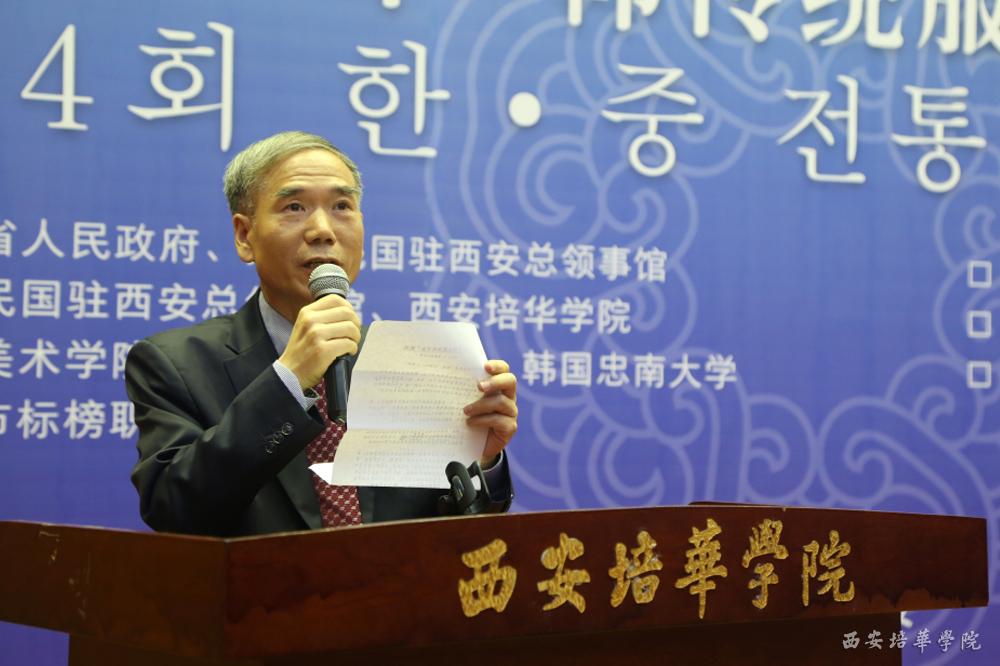 大韩民国驻西安总领事馆总领事李康国,陕西省对外人民友好协会专职副会长张建国分别致辞,表示中韩两国是一衣带水的邻邦,两国文化交流源远流长。此次举办的中韩传统服饰研讨会,是与韩国进行一次服饰文化交流,相互交流,相互融合,从而相互吸收对方服饰文化精华,推动彼此服饰文化共同发展。