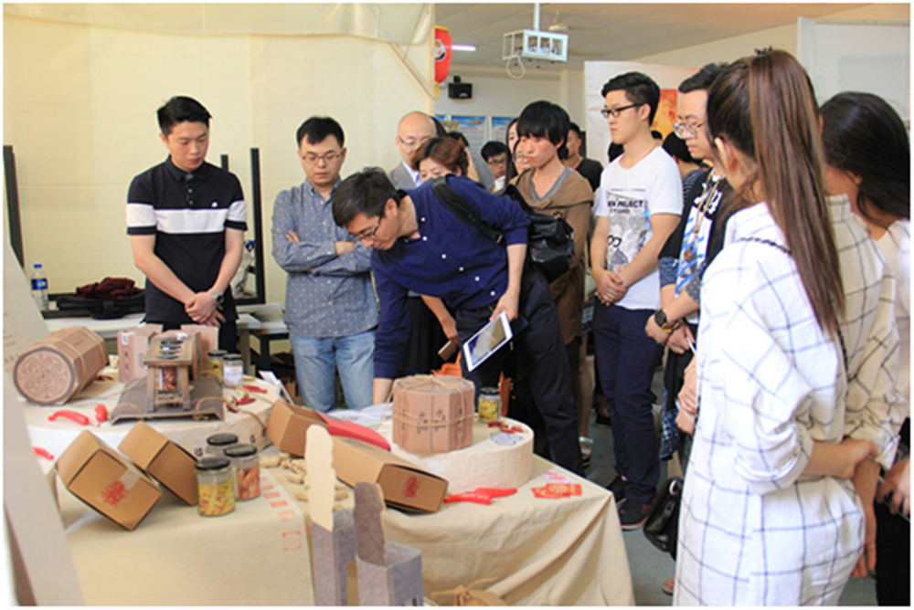 在艺术设计学院院长东会峰的陪同下,永兴坊设计团队参观了36组学生的毕业设计作品,详细听取学生的创作思路和设计理念并分别给予点评。永兴坊设计团队表示,学生设计思维非常活跃,有无限的市场空间,若能抓住市场脉络,会有广阔的职业生涯发展。同时给予高度评价并希望能将部分学生作品放在企业园区进行展览,给企业带来创作的启发。