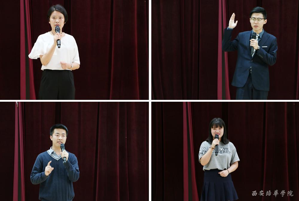 5月18日下午,由我校教务管理中心和通识教育中心共同主办的“西安培华学院第六届大学英语演讲比赛”决赛在我校汇知楼阳光厅圆满落幕。我校通识教育中心主任刘利侠、副主任徐淑华、国际教育学院王鹏副院长应邀观摩了比赛。