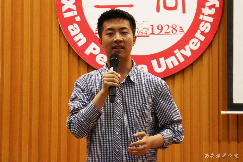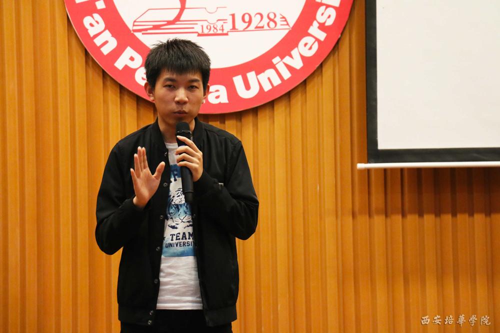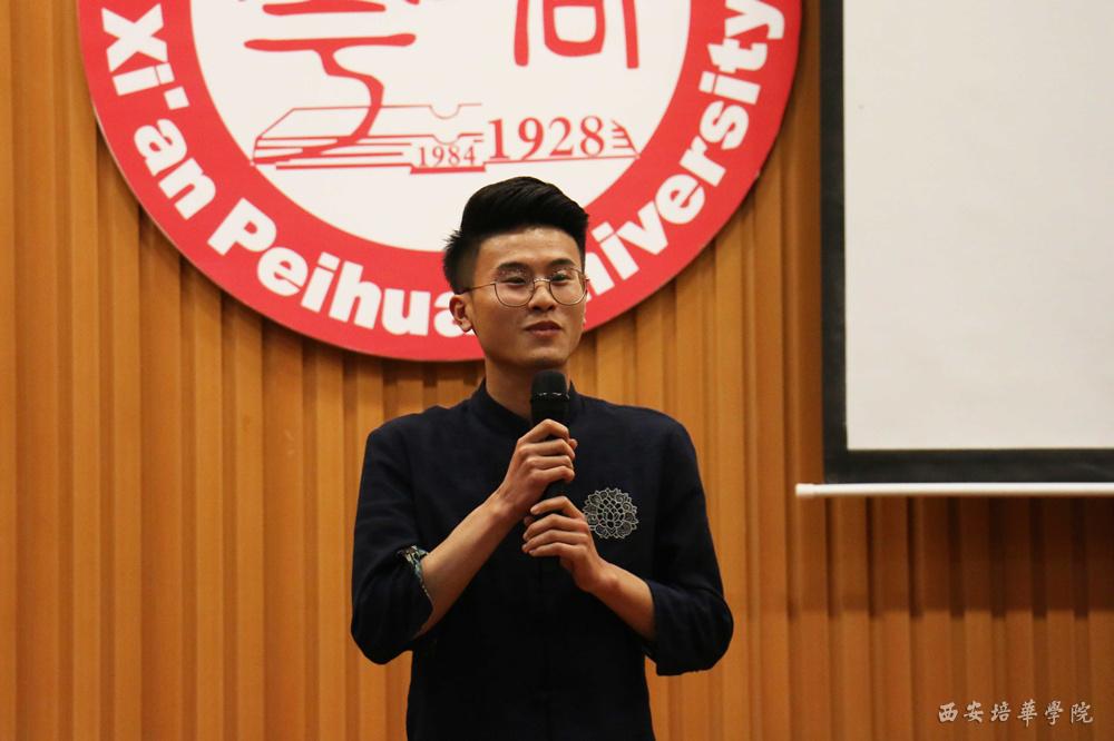 13级广播电视编导专业的郭思诚则分享了自己在做导演的路上的甜与苦,并分享了作为交换生去到台湾所获得的一些学习经验和经历。郭思诚执导的微电影作品《血夜》荣获第三届深圳微电影节“最佳进步微电影新人优秀奖”,前不久,他还在校内拍摄制作了西北首档大学生大型户外竞技真人秀节目《疯狂的大学之培华西游行》。他说,我们要有自己的想法并勇于去实践,迈出了第一步才能知道你行不行。