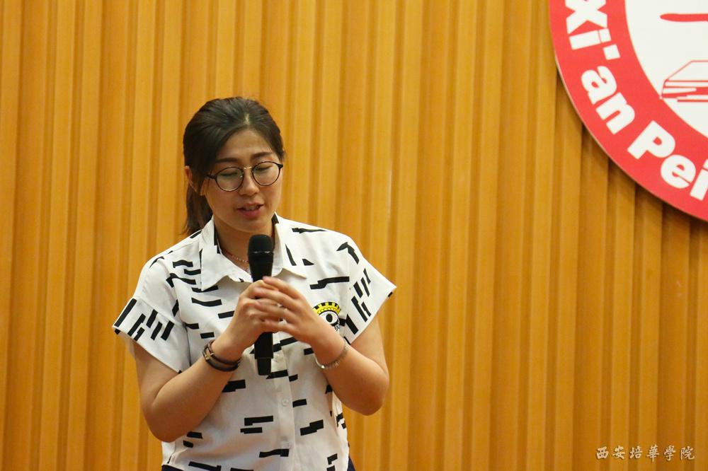 12级戏剧影视文学专业的康鹏则作为大四即将毕业的学姐给我们分享了她的经历。她说,三人行,必有我师焉,自身会有缺点,也会有优点,要选择好的去学习,去努力,相信肯定会得到很多收获。