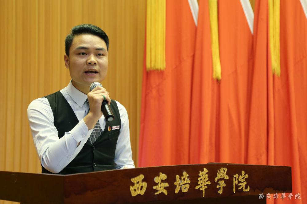 商学院学生会副主席唐伟作为优秀学生干部获奖代表发言