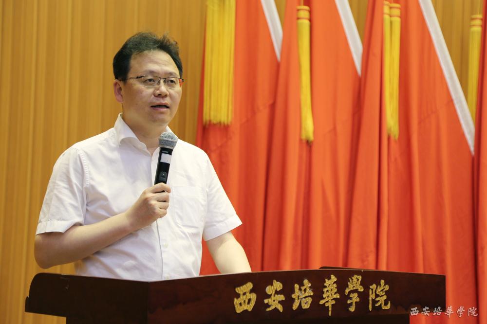 姜波理事长发表了重要讲话,他表示,培华致力于培养有理想、有抱负的新青年,曾多次组织师生去留有革命先辈们遗迹地方缅怀先烈,也邀请了多位革命先辈后人来到学校与广大师生交流。希望广大青年们珍惜当前的幸福生活,不忘历史,承担责任,传承先辈精神,牢记历史使命,践行共青团精神,让自己的青春绽放光彩。他强调,广大青年朋友要肩负起祖辈赋予的希望,追逐心中永不熄灭的梦想火焰,建设更加繁荣、和平的世界。