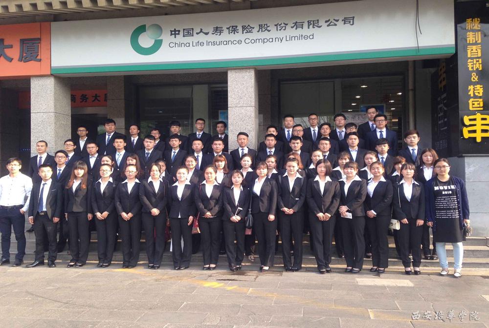 我校到中国人寿保险有限公司西安分公司实习学生合影