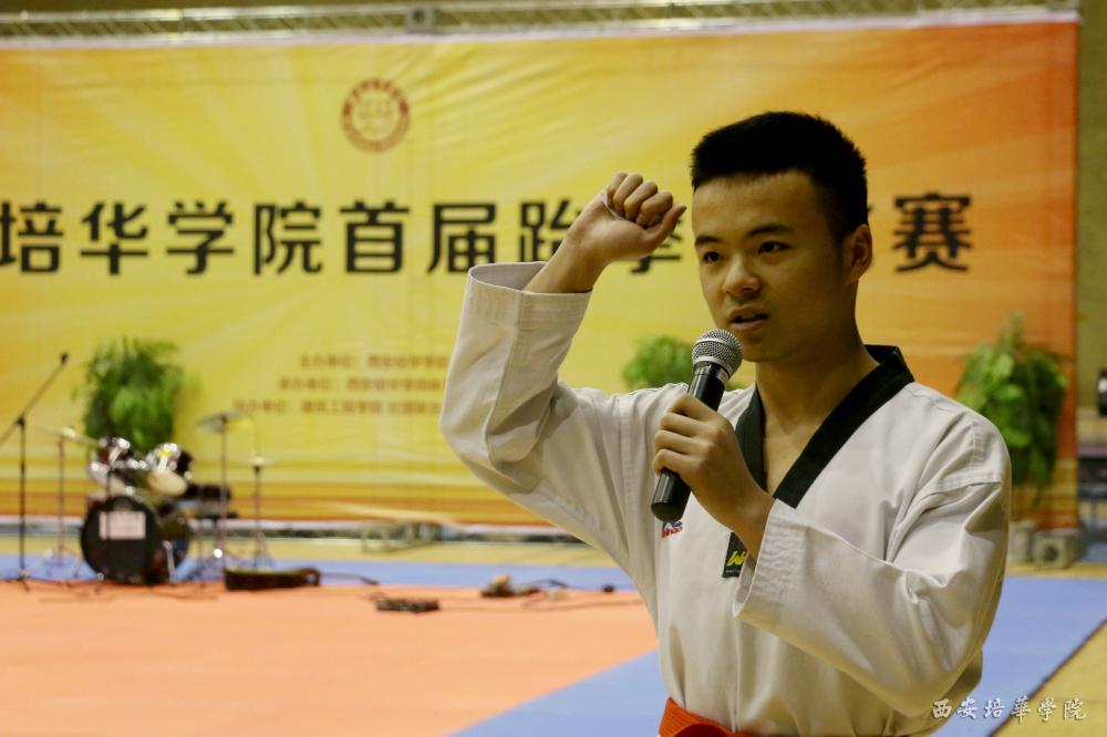 3月22日晚,我校首届跆拳道比赛在校体育馆隆重开幕,于国亮副校长、徐国富副校长、体育部雷耿华主任、体育部马德厚副主任以及各院系的参赛队伍参加了开幕式。来自我校的九支代表队共107名运动员参加了本次比赛,比赛设击破个人赛、品势个人赛、品势团体赛三个项目的比赛,比赛时间从22日至24日,为期三天。