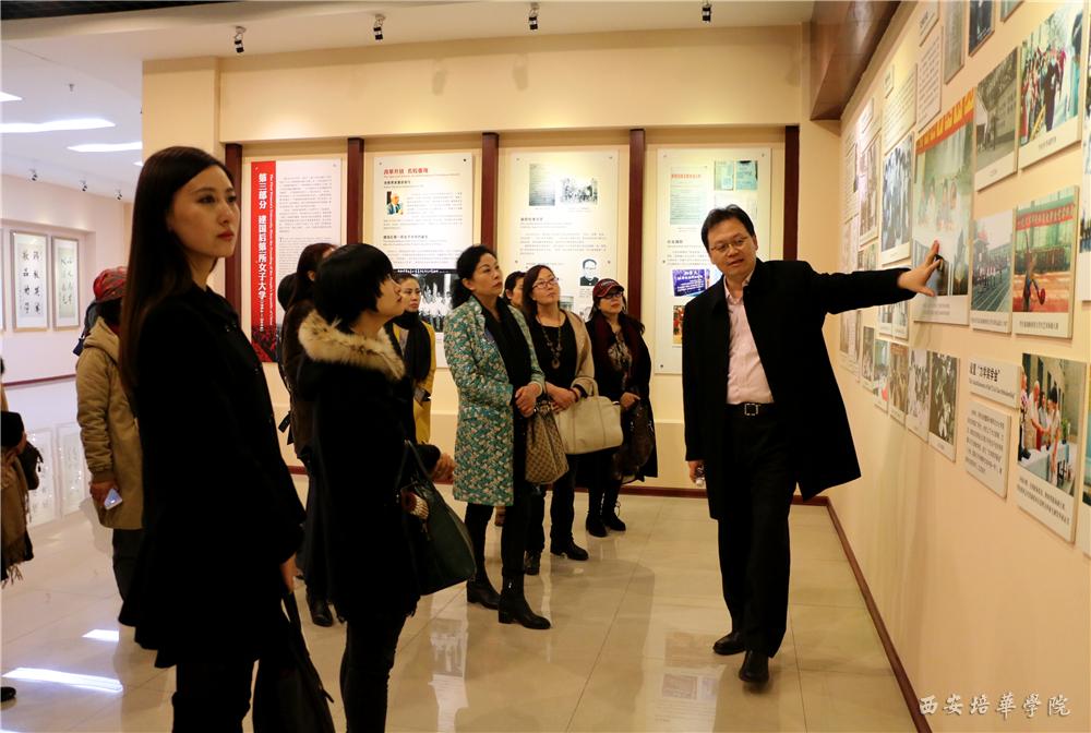 3月8日,陕西省书协副主席、西安市书协主席石瑞芳女士率领十余位女书法家走进培华,和我校师生进行了创作交流,气氛十分热烈。在我校理事长姜波、副校长徐国富、佛教艺术研究院院长马树茂的陪同下,来宾一行参观了我校校区建设模拟沙盘、维之图书馆、校史馆、艺术馆。在艺术馆内,参观了艺术馆中的所有艺术品,有水墨画,油画,书法作品,精美漆器等。