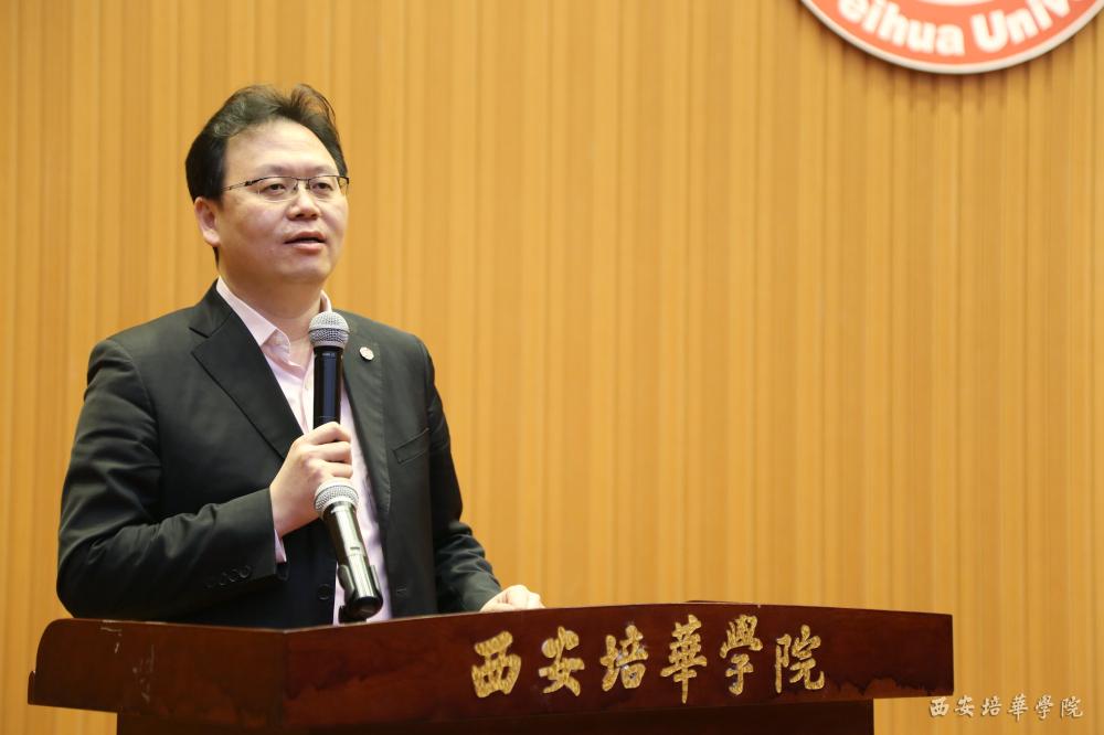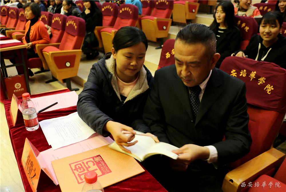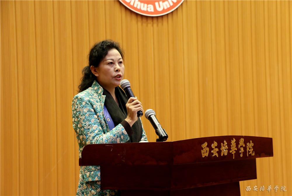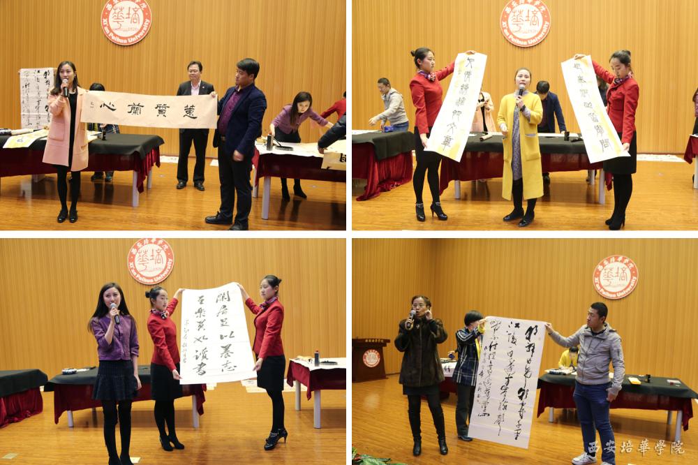 参观结束后,在维之图书馆报告厅,西安市书协与我校共同主办了迎三八“翰墨薪传 大写青春”女书法家进校园活动。陕西省政协常委、我校姜波理事长致欢迎词,他表示,在这个触摸时代,移动互联网时代中,传统文化的学习和传承显得尤为重要,书法艺术可以陶冶人的情操,洗涤人的心灵,开展此次活动,就是为了让大家学习传统文化,重塑中国力量,希望我们90后的大学生能够认真学习书法,走进书法世界,走近大师,弘扬传统文化。