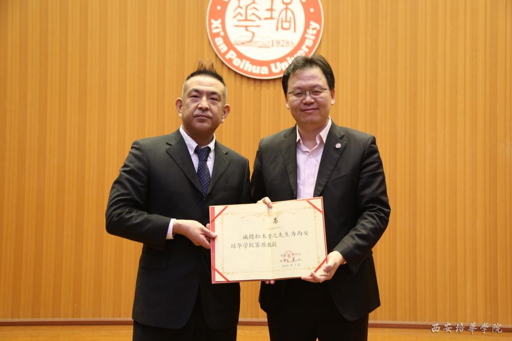 姜波理事长向日本著名书法家松宫贵之颁发客座教授聘书