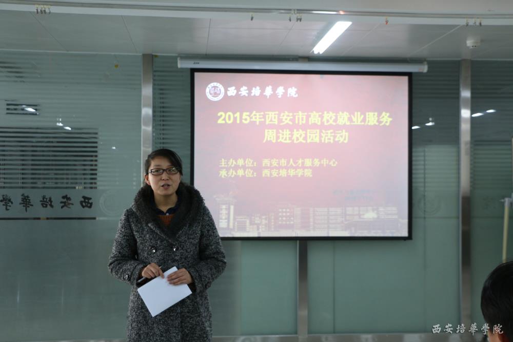 11月26日, 2015年全国人力资源市场高校毕业生就业服务周系列活动之“企业人力资源经理校园行”主题讲座在我校明德楼二楼多媒体教室顺利举办。活动由我校与西安市人才服务中心联合举办。