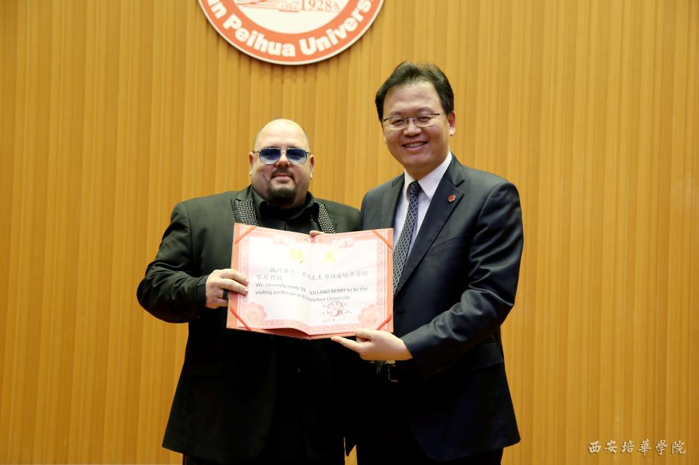 我校姜波理事长为罗兰·贝瑞先生颁发客座教授聘书
