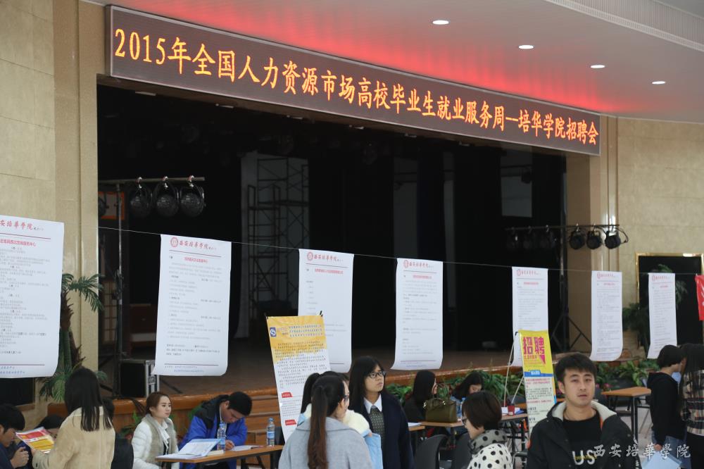 11月25日,“2015年全国人力资源市场高校毕业生就业服务周系列活动——“高校毕业生就业服务进校园——培华学院站”暨我校第四场秋季大型校园招聘会在大学生活动中心举行。