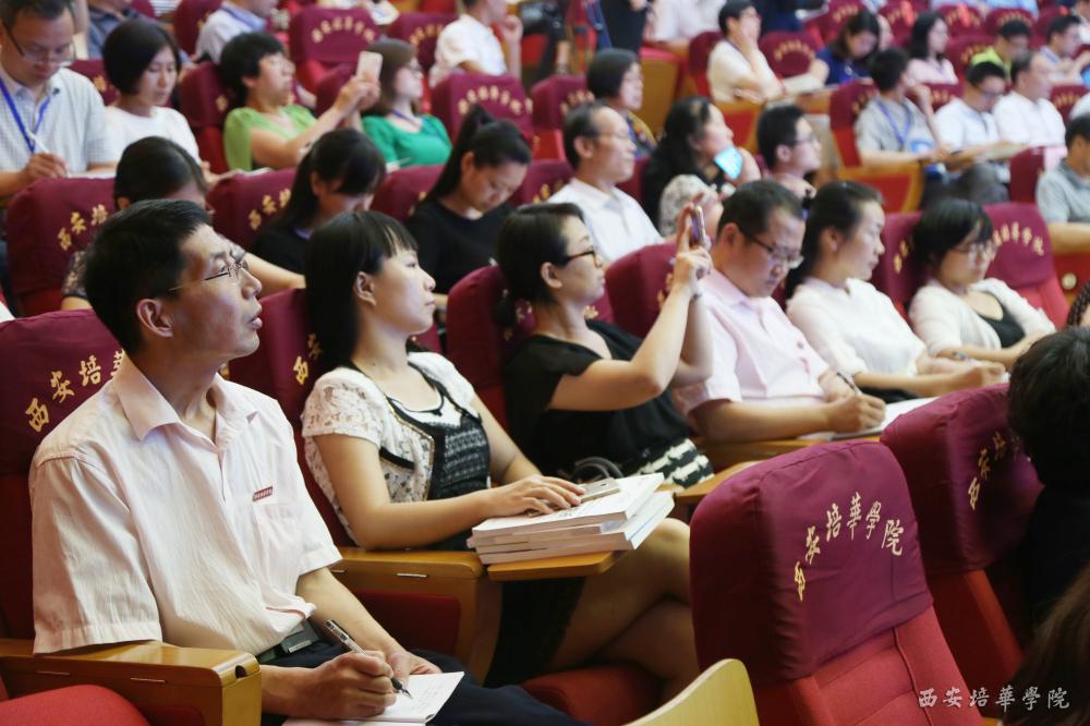 教师认真仔细的做好笔记,讲座最后,陈锋主任表示,这四项改革相互联系、相互支撑,但又可以独立进行,思想解放无止境,实践创新无止境,每一个人能成为创新者。在这次课程建设研修中,讲具体的课程开发和建设的办法,核心的东西就是告诉大家,课程按照什么样的指导思想来开发和建设,怎么设计整个课程。