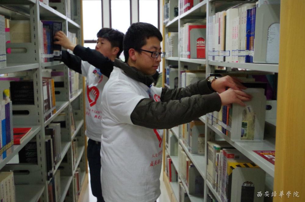 人文学院青年志愿者协会成员义务为图书馆服务