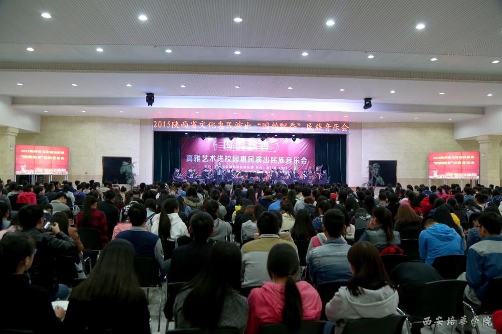 11月2日,“国韵飘香”2015陕西省文化惠民演出民族音乐会在我校大学生活动中心精彩上演,此次音乐会分为两场,分别在当天下午和晚上进行。省政协常委、致公党陕西省委会副主委、我校理事长姜波,致公党陕西省委会办公室主任杜芳滨与我校千余名师生一起,共同聆听了来自陕西省歌舞剧院民族乐团的天籁之音。