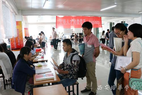 5月13日上午,由我校与211校招网联合主办的综合类校园招聘会在长安校区明德楼就业指导中心大厅举行,吸引我校及其他高校800余名毕业生参加。招聘会上,陕西欣宇通信技术有限公司、佳音英语、金花豪生国际大酒店等近60家企事业单位前来招贤纳士,为毕业生提供就业岗位2200余个,涉及软件类、建筑类、计算机类、行政管理类、文秘等10余个专业。在招聘会现场一片忙碌的景象。学生手持建立积极与用人单位交流,咨询企业的用人标准、薪资待遇、发展空间等问题。用人单位纷纷表示培华学院学生综合素质较高,实习经验丰富。