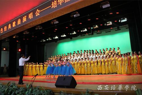 为传承革命优良传统,培养和激发学生爱国主义热情,5月27日,我校红色经典歌曲演唱会在大学生活动中心精彩上演。演唱会主要以演唱经典红色歌曲和《培华颂歌》为主,共有来自各二级学院10支代表队参加演唱会。演唱会中,各代表队以娴熟的歌唱技艺,靓丽多彩的合唱服饰,花样多变的歌唱形式,再加上插入舞蹈、朗诵等表演方式,展现了培华人的青春与激情。90后学子用《歌唱祖国》、《南泥湾》、《我和我的祖国》等经典革命歌曲抒发对党和祖国的热爱之情,一首《培华颂歌》表达对母校深深的祝福。整场演唱会精彩纷呈,掌声、欢呼声不断。