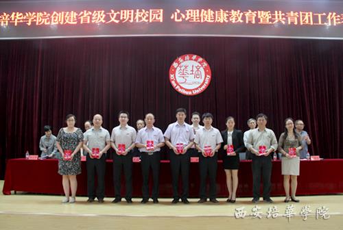 会议首先由王拴才校长宣读《中共西安培华学院委员会、西安培华学院关于表彰创建省级文明校园工作先进单位和和先进个人的表彰决定》,段茂贤副校长宣读《西安培华学院关于表彰2013年度优秀心理辅导站、心理工作者、心理委员的决定》,张栓升副校长宣读《共青团西安培华学院委员会关于表2013-2014学年优秀团员、优秀团干部、优秀团员标兵、先进团支部、学雷锋先进集体、学雷锋先进个人、五四红旗团总支的决定》和《关于表彰西安培华学院第八届大学生课外科技节先进集体和先进个人的决定》。校领导分别为各类受表彰的先进单位及师生代表颁奖。