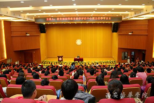 报告中,季平主任介绍了国家和地方政府对民办高校发展的支持政策,她希望在良好的政策环境下,学校认真研究、完善高等教育质量保障体系,做好顶层设计,以学生需求、适应市场需求为教学目标,培养学生自主意识,狠抓学校的教学质量和内涵建设,抓住机遇,实现学校的科学发展。她讲到,学校要以教育部本科合格评估为契机,明确努力方向和目标,不断改进教学工作和规范教学管理,促进教学质量的不断提升,为建设人民满意的高水平民办大学而努力奋斗。