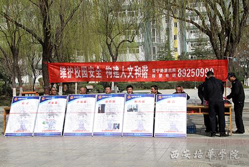 3月17日,由西安市长安区公安分局常宁路派出所和我校联合举办“防火 防盗 防诈骗”为主题的宣传教育活动在文化广场展开,此次宣传活动采用了发放安全防范知识宣传单、安全常识展板宣传、悬挂宣传横幅等方式,向同学们传授基本的防火、防盗、防诈骗知识。这次宣传内容主要结合高校易发生的几种诈骗形式和现实案例,以增强大学生自我安全防范和保护意识,提高我校师生对违法犯罪行为的鉴别能力。