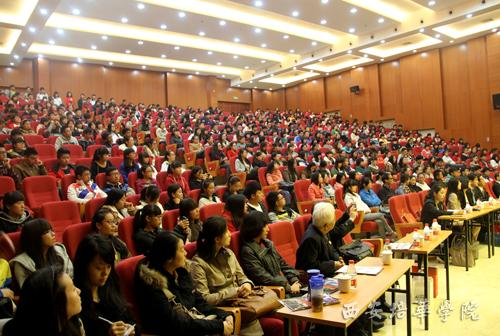 参观结束后,上甲副知事在我校维之图书馆报告厅为学生举办了专题讲座,主要介绍了爱媛县的地理位置,人口结构、产业经济发展等。之后,双方互赠纪念品并合影留念。