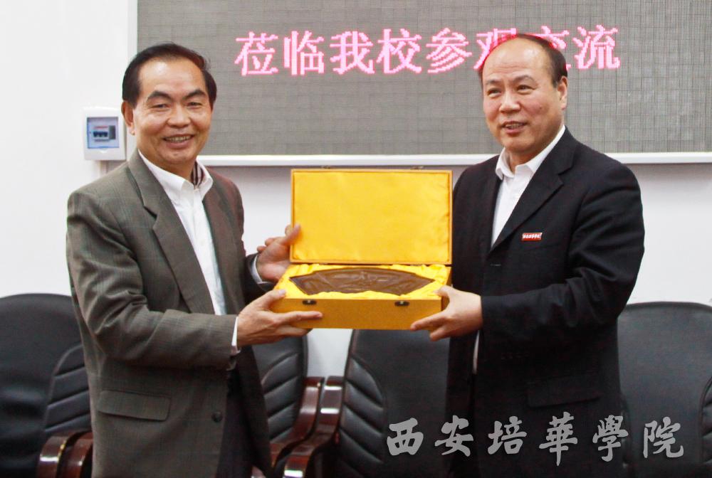 最后,康大党委书记李福明表示:非常感谢西安培华学院各位领导的真诚,并由衷感叹“教育的成功在于对学生的爱”培华学院也正做到了这一点。并向我校赠送了礼物。