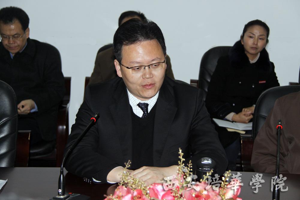 省教育厅干部人事处处长高晶华在会上宣读了由中共陕西省委教育工委下发的《关于周庆华王斗虎同志职务任免的通知》,委派周庆华同志担任西安培华学院委员会书记、督导专员;免去王斗虎同志西安培华学院委员会书记、督导专员职务。