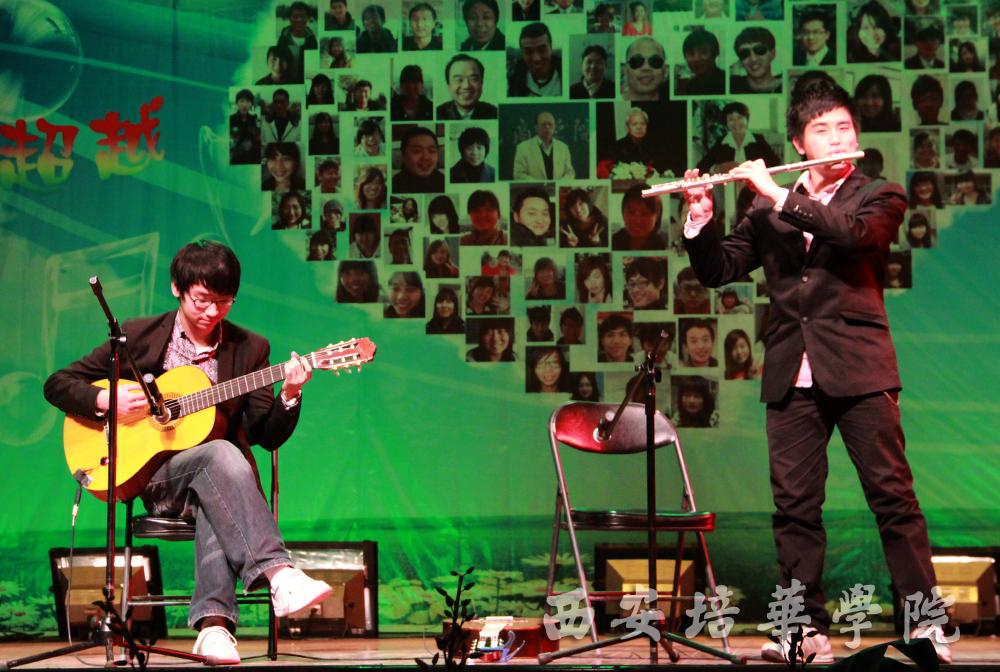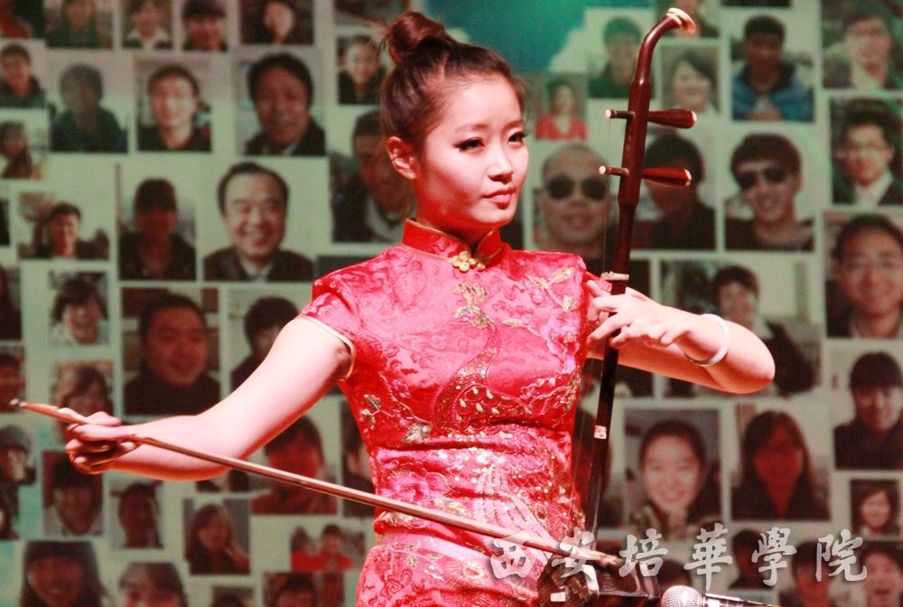 本场晚会分为新生、成长、追梦、辉煌四个篇章。一曲《我们的时代》拉开了晚会帷幕,动感的音符、欢快的节奏声使得场内气氛瞬间达到沸点。在场的同学们借助微博平台积极互动,传递出对商学院和培华大家庭的美好祝福。第二篇章成长中由各院(部)、处(室)带来的精彩的节目,学生处选送的二胡《赛马》热烈而欢快;就业办选送的现代舞《Future》青春气息十足,带动全场观众一起欢呼雀跃。商学院金晨朗诵的《成长》讲述了一个正在成长的商学院的青春勃发的气息,他激情澎湃的朗诵带观众们领略属于青春的欢快乐章。第三篇章追梦中《民族舞》可谓整场晚会的亮点,台上演员精致的服装、优美的动作、丰富的表情博得场内观众阵阵掌声,他们细腻、真挚的表演感染了在场所有观众。晚会特殊嘉宾——学生处李爱琴处长精彩的太极拳表演将整场晚会推向高潮。在第四篇章辉煌中,话剧《三国杀》通过模拟游戏的趣味形式深入浅出的传达出应该珍视时间、把握机遇的教育意义。创意时装秀将时尚元素于环保理念相结合,展示出培华学子特有的才华。