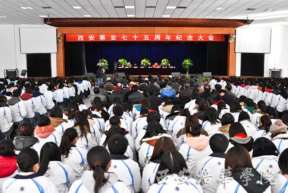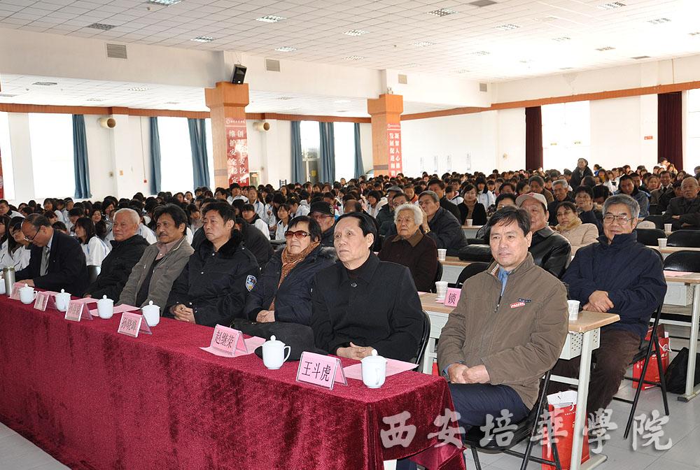 出席纪念大会的嘉宾有:陕西省政协原副主席刘石民,全国人大代表、民革陕西省委会副主委屈雅君,共青团陕西省委副书记、陕西省青联副主席段小龙,中共陕西省委统战部原副部长、陕西省海外联谊会秘书长姜铁汉,中共陕西省委统战部研究室主任王彦平,陕西省委党史研究室宣传教育处处长雷学军,西安市党史办主任靳秀珍,杨虎城将军之女杨拯美,杨虎城将军秘书之女宋振平等一批革命前辈的后人以及陕西省青联副主席、我校理事长姜波,院长陈明华,党委书记王斗虎。我校千余名师生代表参加了纪念会。本次纪念大会由陕西省文化厅三秦儿女红色文化宣讲团常务副团长王放主持。