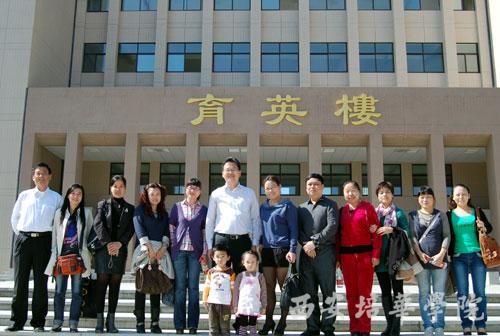 校友到达新区后,无不感叹长安校区建筑宏伟,规划优美绝伦,设施完善、校园绿化优美。初到新区,大家先照了一张“全家福”。随后,大家便循着旧日的记忆,在姜波理事长的陪同讲解下,细细阅读着母校这二十年的变迁。
