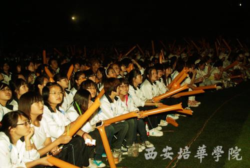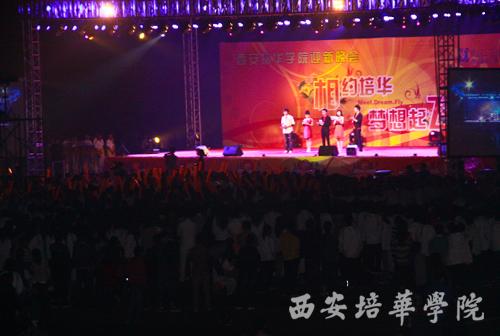 9月26日晚,由西安培华学院,西安音乐广播FM93.1和中国移动陕西分公司联合举办的“相约培华,梦想起飞”2011迎新晚会在我校体育场隆重举行。我校党委书记王斗虎,副院长杨定君、段茂贤、王根性,西安人民广播电台音乐台台长穆西娟女士,中国移动陕西公司西安分公司副总经理张宇铎等出席晚会。各院(部)、处室领导以及师生代表五千余人共同观看演出。