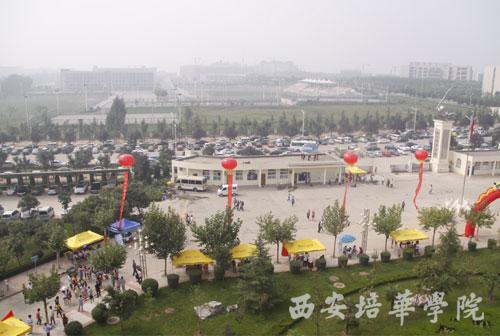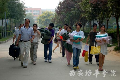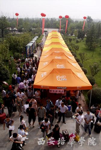 为方便外地的新生来校报道,我校在西安火车站设立了接待点,并有几十辆大巴车往返学校和火车站之间接送新生及家长。