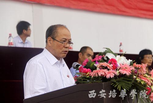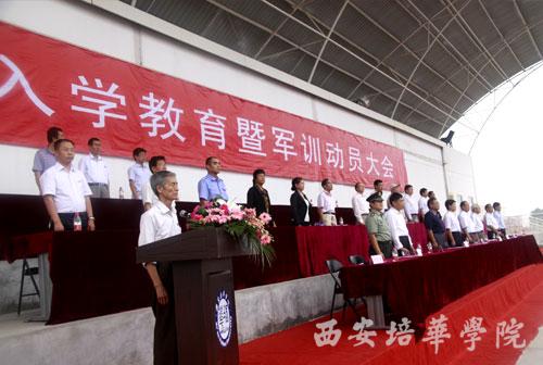 9月4日,我校2011级新生入学教育暨军训动员大会分别在长安校区和高新校区隆重举行。来自全国各地的6000余名统招新生相聚培华,以良好的精神面貌迎接入学教育第一课。我校院长陈明华,党委书记王斗虎,副院长陈胜秋、杨定君、段茂贤、王根性、刘应南、王拴才、院长助理姜朗,以及各院(部)、处室领导参加大会。段茂贤副院长主持大会,院长陈明华作了重要讲话。