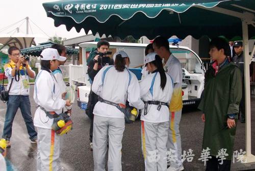 我校志愿者20个小组、在贵宾接待处、出入口管理处、票务中心、长安花谷、媒体中心等岗点上,以良好的适应能力和较强的服务意识得到了园区管理人员的充分肯定。尤其是在轮椅租赁处服务的04组更是用完美的服务迎来了最近几天第一个轮椅租赁处的零投诉日。