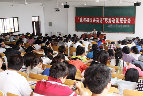 为庆祝中国共产党成立90周年,为在团员青年中进一步唱响“我与祖国共奋进”的主旋律,引导广大团员青年坚定跟党走的中国特色社会主义道路的信念,积极踊跃地投身于“十二五”建设的伟大实践。5月3日,我校举办《我与祖国共奋进》—— “十二五”经济社会发展规划纲要学习辅导主题报告。此次报告会由贾必章教授担当主讲,我校近300名师生聆听了报告会。