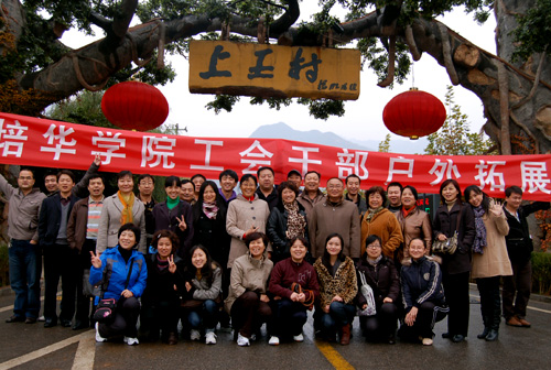上午九点整,拓展队在校工会常务副主席田红的带领下乘坐校车前往目的地。在校车上,各位老师愉快交谈,表演自己的才艺节目。校工会主席、副院长王根性和各位老师亲切交谈,热心询问他们工作和生活方面的情况。他说,我校工会一向重视关心教职工的工作与生活,此次组织工会干部及部分教职工进行拓展活动,目的是为了让大家增进友谊,增强自信心,增强团队意识,增进对培华大家庭的认同感与责任感。