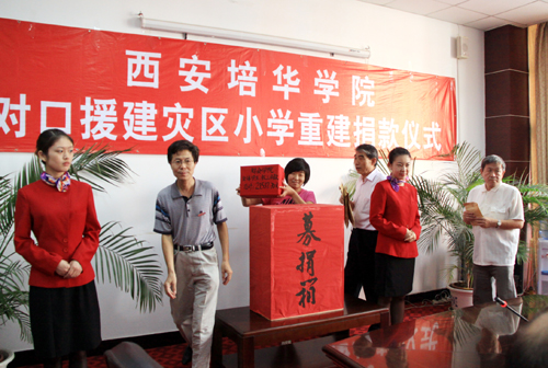 为了积极响应省委、省政府的号召,认真贯彻落实省教育厅关于对口援建工作部署,学校高度关注和重视,专门成立了以姜波理事长为组长,王拴才副院长为副组长的对口援建平利县老城区凤凰小学工作领导小组。全校教职员工和学生积极行动,纷纷向灾区小学伸出援助之手。短短两天时间,已募捐七万余元。
