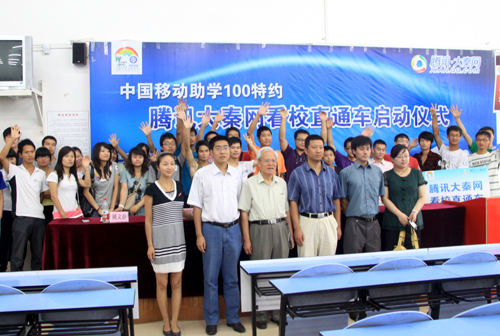 中共陕西省委宣传部网管办副主任高志强、陕西省学生联合会主席尚军亮、中国移动通信集团公司西安分公司市场部主任梁晶、腾讯大秦网总编助理杨彬江和我校副院长杨定君、招办主任姚文静以及人民日报、新华社、中新社、中央人民广播电台、中国日报、香港文汇报、大公报、陕西电视台、西安电视台、华商网等中央、省市20多家媒体的记者出席了启动仪式。