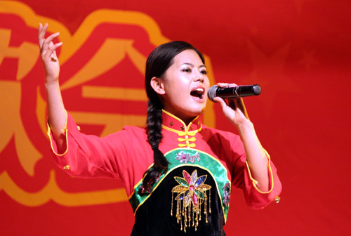 在红歌会闭幕前,我校朗诵艺术团为在场师生朗诵了主题诗《中国人,不跪的人》,医学院学生王毛毛演唱了歌曲《黄土高坡》。
